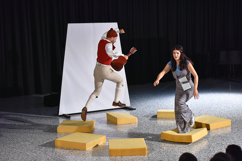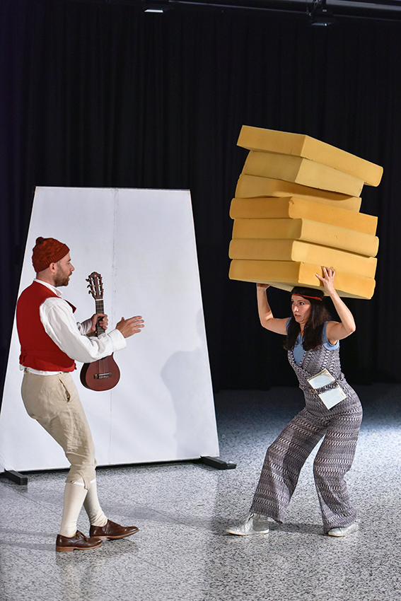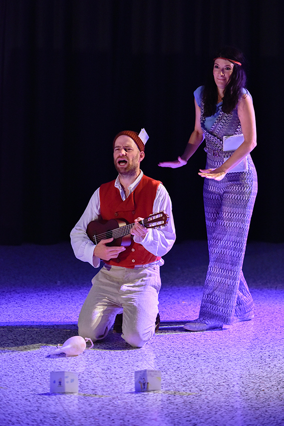 Hannah will ans Meer! Auf ihrem Weg trifft sie auf Hans – „Hans Im Glück“. Glücklich sitzt er mit seiner Gitarre auf einem Berg aus Gold und singt den „Heiweh-Reggae“. Sie kann es kaum fassen, das glaubt ihr keiner. Er will jedoch nur eins: nach Hause. Tut Heimweh weh? Überdrüssig der schweren Last, bietet Hans sein Gold gegen ein Ross. Dieses ist schnell zur Stelle, und so wird getauscht. Doch was soll Hannah mit so viel Gold? Die ZuschauerInnen haben Lösungen bereit, und so beginnt das rasante Road-Märchen mit Hans und Hannah, den Sehnsüchten der Kinder und dem Glück. Ist es nicht blöd, eine Kuh gegen eine Sau zu tauschen? Und woher nehmen, wenn nicht stehlen? Und was, wenn man lieber einen Töff hätte? Mit dem wäre Hannah auch schneller am Meer… Will sie überhaupt noch ans Meer? Jetzt wo es so schön ist, zusammen mit Hans on the road. Gemeinsam spinnen sie ein Netz von Möglichkeiten des Tauschens, um ihrem Ziel näher zu kommen. All you need is less… bis Hannah Hansens Gitarre will. Verspielt, schräg und poetisch.